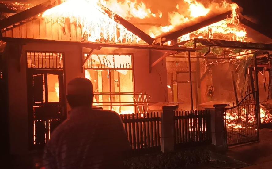 Kebakaran yang diduga berasal dari arus pendek listrik ini menyebabkan satu bangunan rumah tunggal dan ruma kos dengan 14 pintu hangus terbakar.