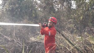 “Ini mulai awal bulan puasa. Kita memang sudah perang, katakanlah sudah perang, di kebakaran lahan, panas cuaca. Saat ini kondisi angin cukup kencang, jadi sebarannya atau pukulannya untuk ke sebelah barat itu sangat kencang. Ya, kalau yang sekarang 3 titik, padahal info awal tadi baru satu titik. Karena angin kencang jadi 3 titik,” ungkap Nusa Indah.