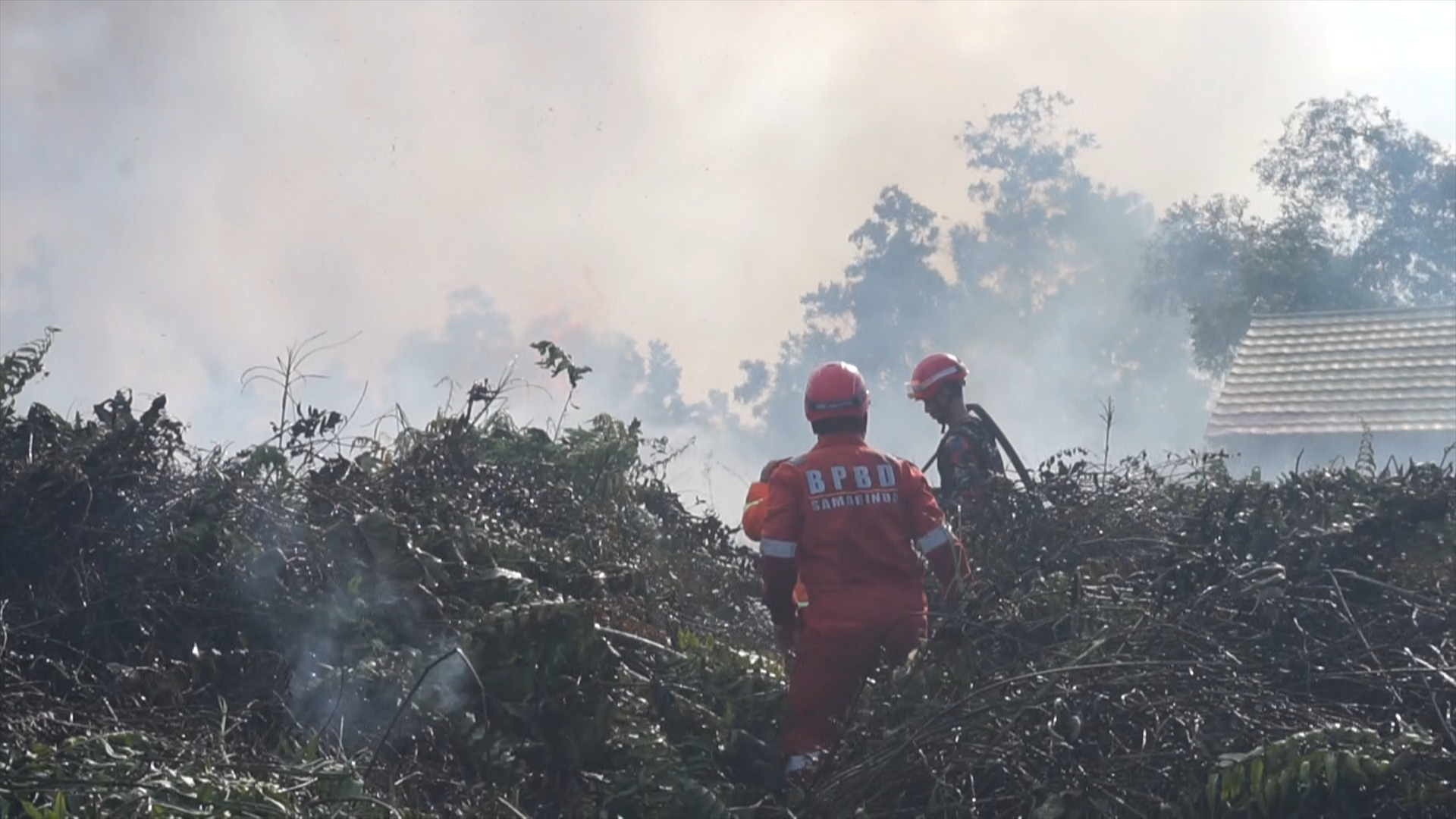 Petugas BPBD Kota Samarinda harus berjibaku memadamkan api agar tidak membakar rumah warga. Akibatnya, sejumlah warga terpaksa meninggalkan rumahnya karena kabut asap pekat yang menyelimuti kediaman mereka.