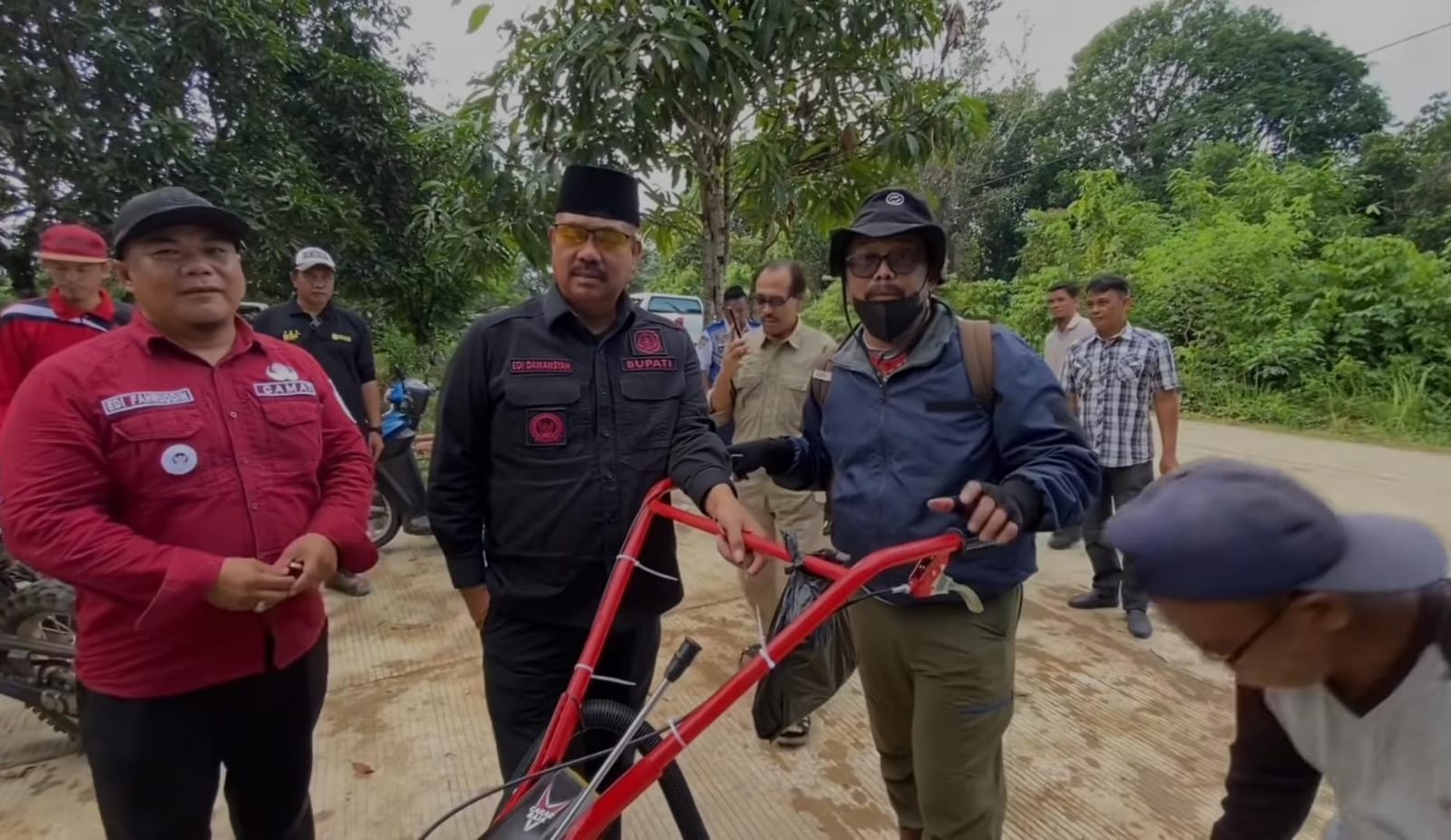 Dalam kunjungannya, Bupati tidak hanya memberikan motivasi, tetapi juga bantuan nyata berupa alat pertanian modern.