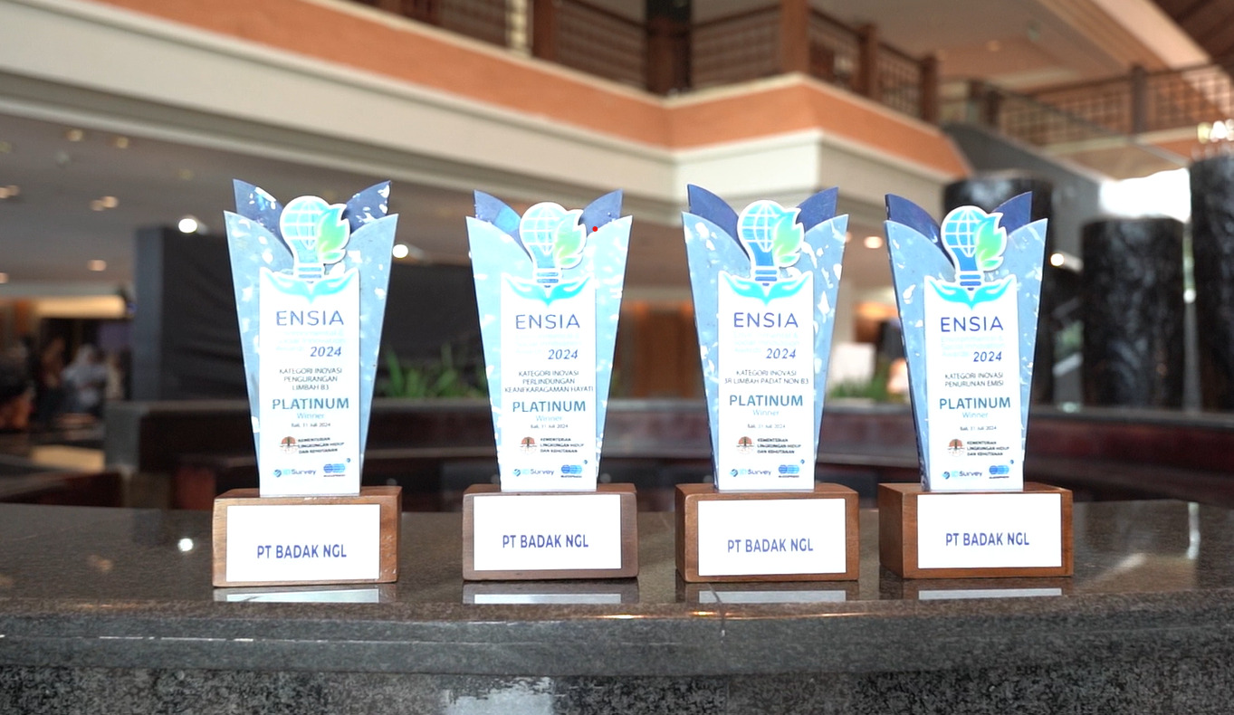 Atas berbagai upaya dan inovasi tersebut di atas, Badak LNG berhasil meraih empat penghargaan Platinum di ajang Environmental and Social Innovation Awards (ENSIA) 2024 yang diselenggarakan oleh PT Sucofindo. ENSIA 2024 merupakan ajang penghargaan yang diselenggarakan untuk mengapresiasi pelaku usaha dalam menjalankan upaya inovasi bidang lingkungan dan sosial untuk keberlanjutan. Pada tahun ini ENSIA diikuti 756 paper pendaftar mengenai inovasi lingkungan dan sosial.