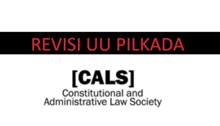 CALS Serukan Perlawanan terhadap Pembangkangan Konstitusi Atas Rencana Revisi UU Pilkada Constitutional and Administrative Law Society (CALS) mengeluarkan seruan perlawanan terhadap rencana revisi Undang-Undang Pemilihan Kepala Daerah (UU Pilkada) yang dinilai mengabaikan putusan Mahkamah Konstitusi (MK), Rabu 21 Agustus 2024.