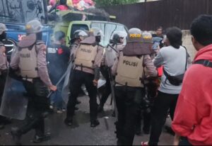 Aksi mahasiswa akhirnya bubar setelah ratusan petugas dari Samapta Polda Kaltim dan Polresta Samarinda mendesak mundur hingga 500 meter dari gedung DPRD Kalimantan Timur. Bejo