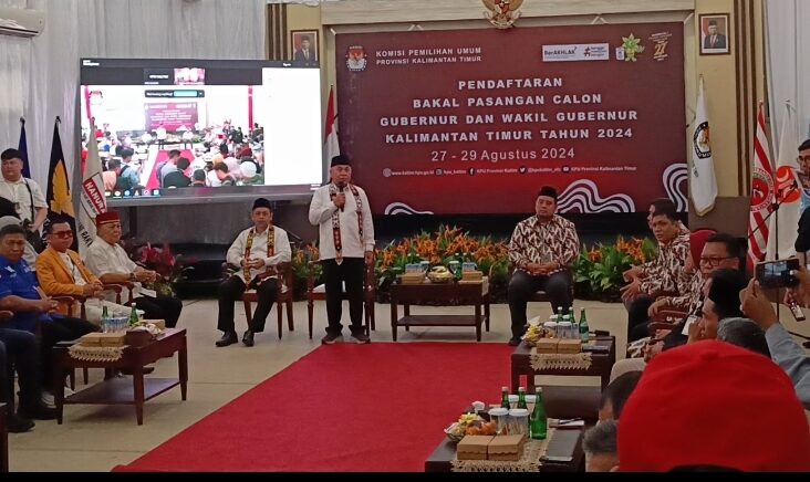 Setelah sempat dibayangi tidak mendapat dukungan partai politik untuk maju pada pemilihan kepala daerah di Kaltim Pasangan Calon Gubernur (Cagub) dan Calon Wakil Gubernur (Cawagub) Kalimantan Timur Isran Noor dan Hadi-Mulyadi akhirnya mendaftar ke Komisi Pemilihan Umum (KPU) Kaltim sebagai peserta pemilihan Kepala Daerah (pilkada) Kaltim 2024.