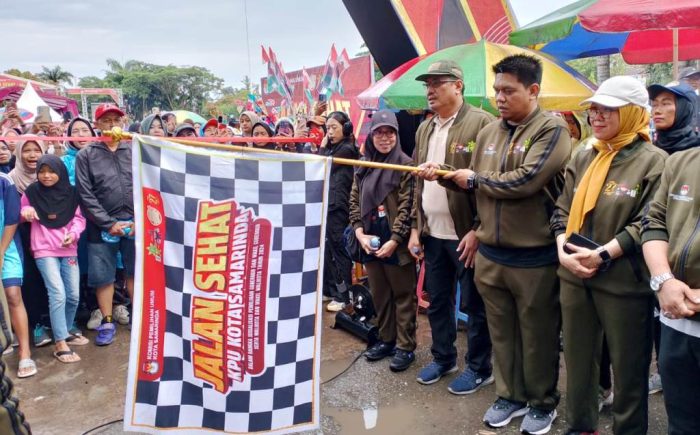 Samarinda,Solidaritas– Komisi Pemilihan Umum (KPU) Kota Samarinda mengadakan acara Jalan Sehat yang dihadiri ratusan warga, meskipun hujan turun.