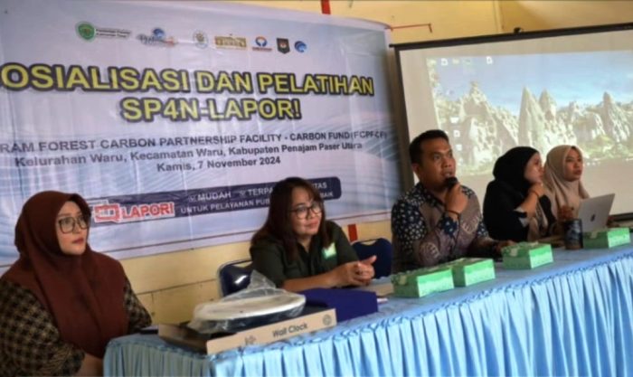 Samarinda,Solidaritas- Dalam upaya mengoptimalkan peran masyarakat dalam pelestarian hutan Kalimantan untuk Program Forest Carbon Partnership Facility-Carbon Fund (FCPF-CF) di Kelurahan Waru, Penajam Paser Utara (PPU), Kamis 7 November 2024, Dinas Komunikasi dan Informatika (Diskominfo) Provinsi Kaltim menggelar sosialisasi dan pelatihan SP4N-LAPOR