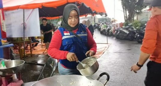 Samarinda, Solidaritas– Hujan yang mengguyur kota Samarinda, Kamis (31/1/2025) tidak menyurutkan kegiatan Musrifah salah satu anggota Tim relawan Tanggap Taruna Bencana (Tagana) Dinas Sosial Propinsi kalimantan Timur menggorek makanan tahu bakso untulk para pengungsi dan petugas di Posko banjir di Perumahan Griya Muksi Sejahtera.
