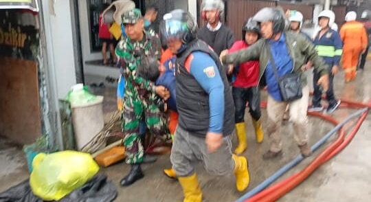 Beberapa warga terlihat panik berusaha menyelamatkan barang berharga dari dalam rumah mereka.