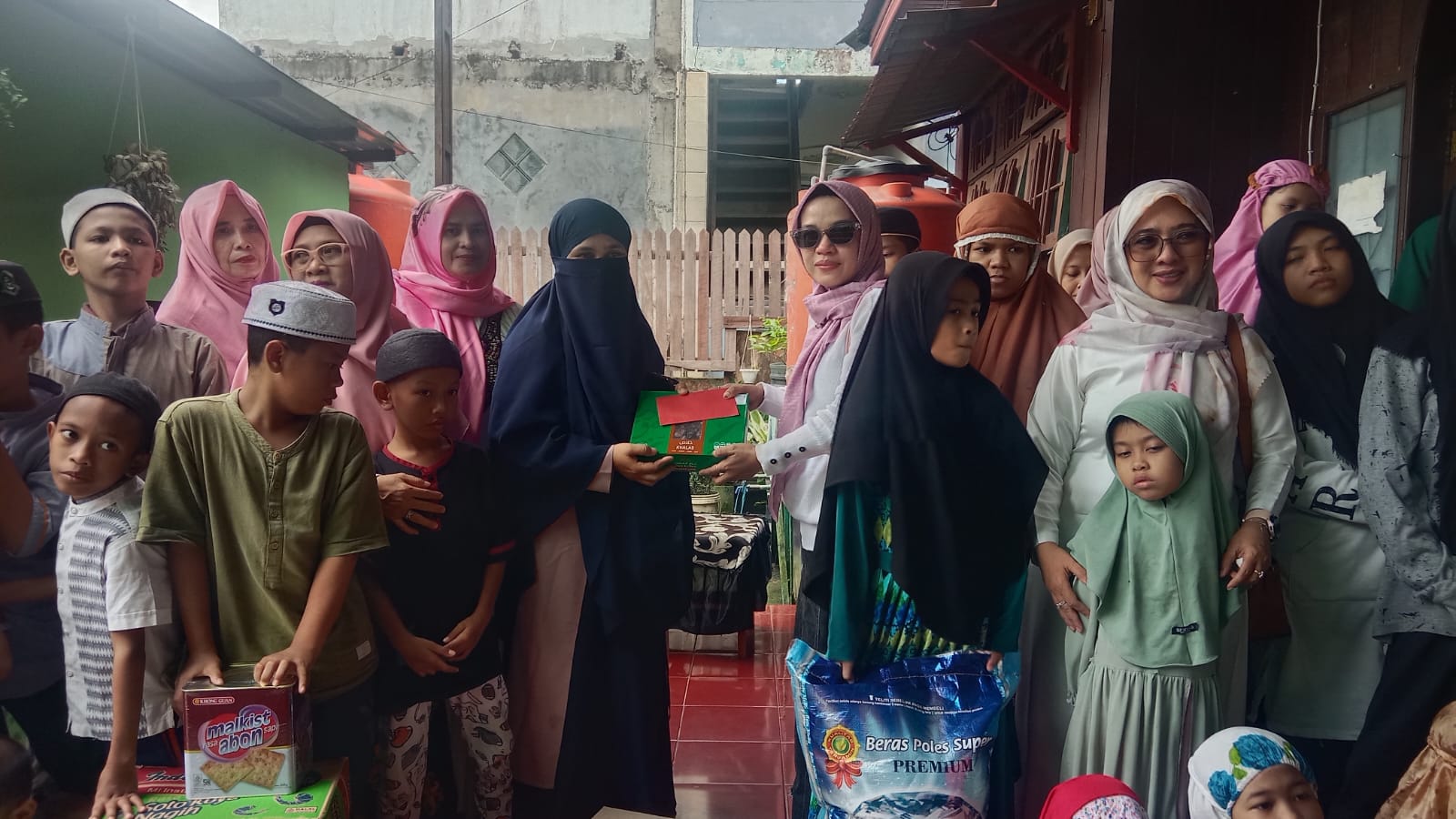 Setelah menyerahkan bantuan ke Yayasan Al Kahfi cabang Samarinda, rombongan IKWI kembali bergerak menuju jalan Kahoi 10 RT 32 Kelurahan Karangaanyar kecamatan Sungai Kunjang Kota Samarinda.