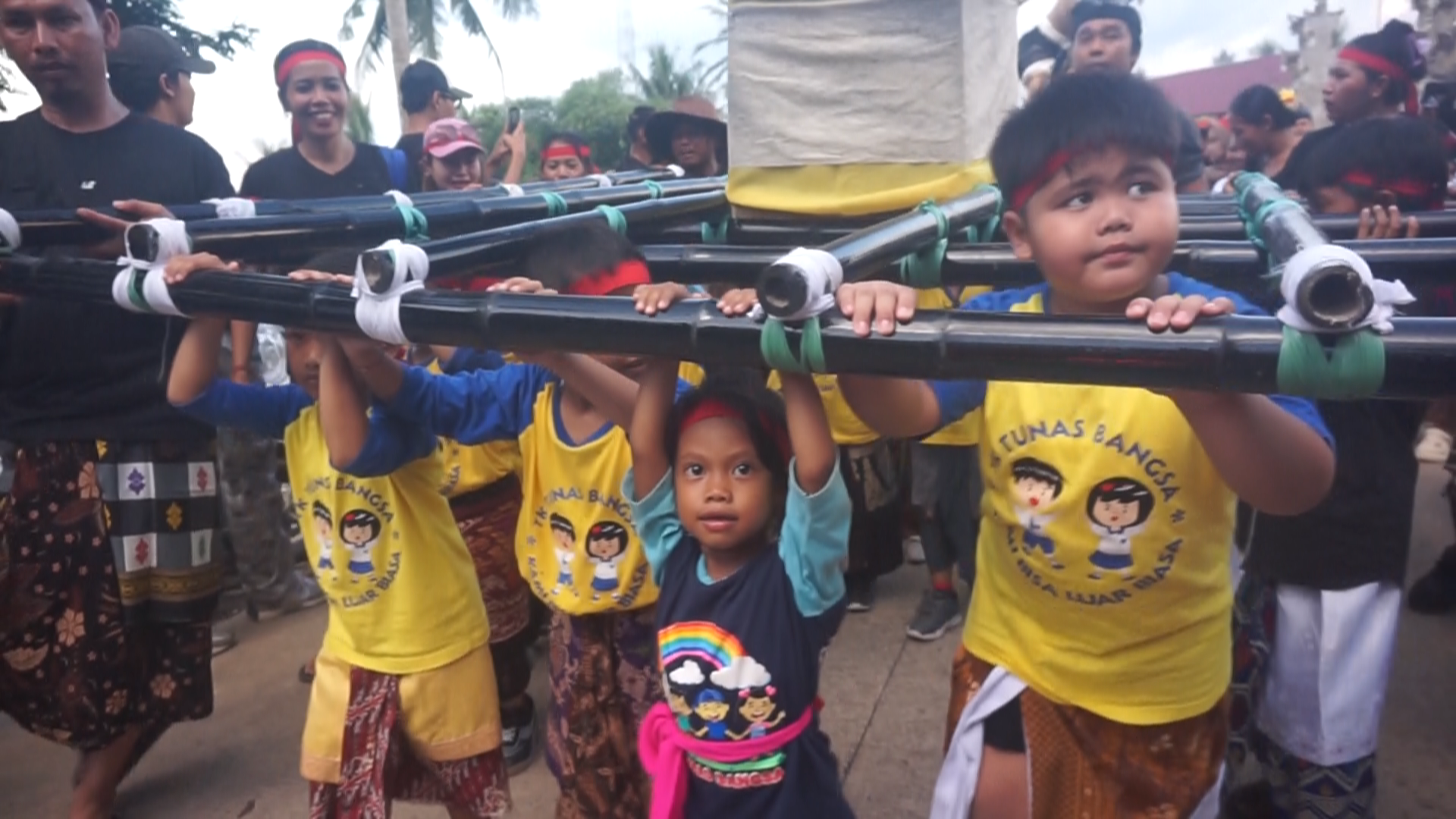 Anak anak bahkan tampak antusias mengikuti arak-arakan ogoh ogoh mengelilingi desa Kertabuana yang berjarak hingga 2 kilometer