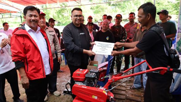 Bantuan yang diserahkan meliputi benih padi, hand traktor, pestisida untuk kelompok tani setempat, bibit ikan lele, pakan, dan kolam terpal untuk kelompok budidaya ikan untuk bantuan pertanian.