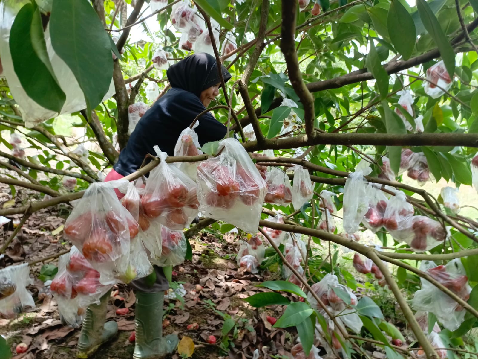 Arif, salah seorang pembeli, memuji kualitas jambu hasil panen Hadi. “Sudah enam tahun saya ambil dari Pak RT ini, dibawa ke Pasar Segiri, seminggu dua kali. Kalau yang Citra ini bagus Pak, peminatnya banyak,” kata Arif, yang juga mengambil komoditas lain seperti pisang dan pepaya.