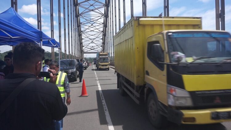Selama proses pengujian yang berlangsung sekitar dua jam tersebut, akses jembatan ditutup total. Antrean kendaraan sempat mengular di kedua sisi sebelum akhirnya petugas kembali membuka jalur secara terbatas.