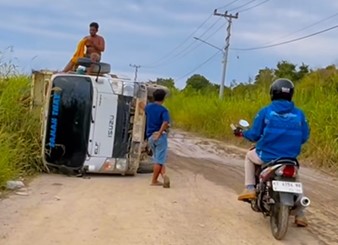 Potret truk yang harus berhati-hati saat melintasi jalan rusak di Desa Teluk Muda, Kec. Kenohan, Jumat (27/2). Titik ini berada 2 km dari perbatasan Desa Sebelimbingan. Akibat lubang yang dalam dan lebar, arus lalu lintas kerap tersendat karena kendaraan yang terguling akibat dalamnya lubang di jalan, Foto Arian