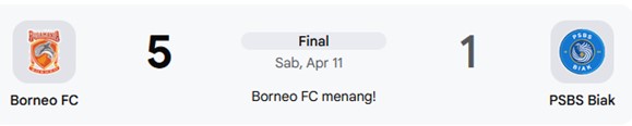 Samarinda, Solidaritas – Borneo FC tampil luar biasa dominan saat menjamu PSBS Biak dalam lanjutan pekan ke-27 BRI Super League 2025/2026 di Stadion Segiri, Sabtu (11/4/2026) sore.